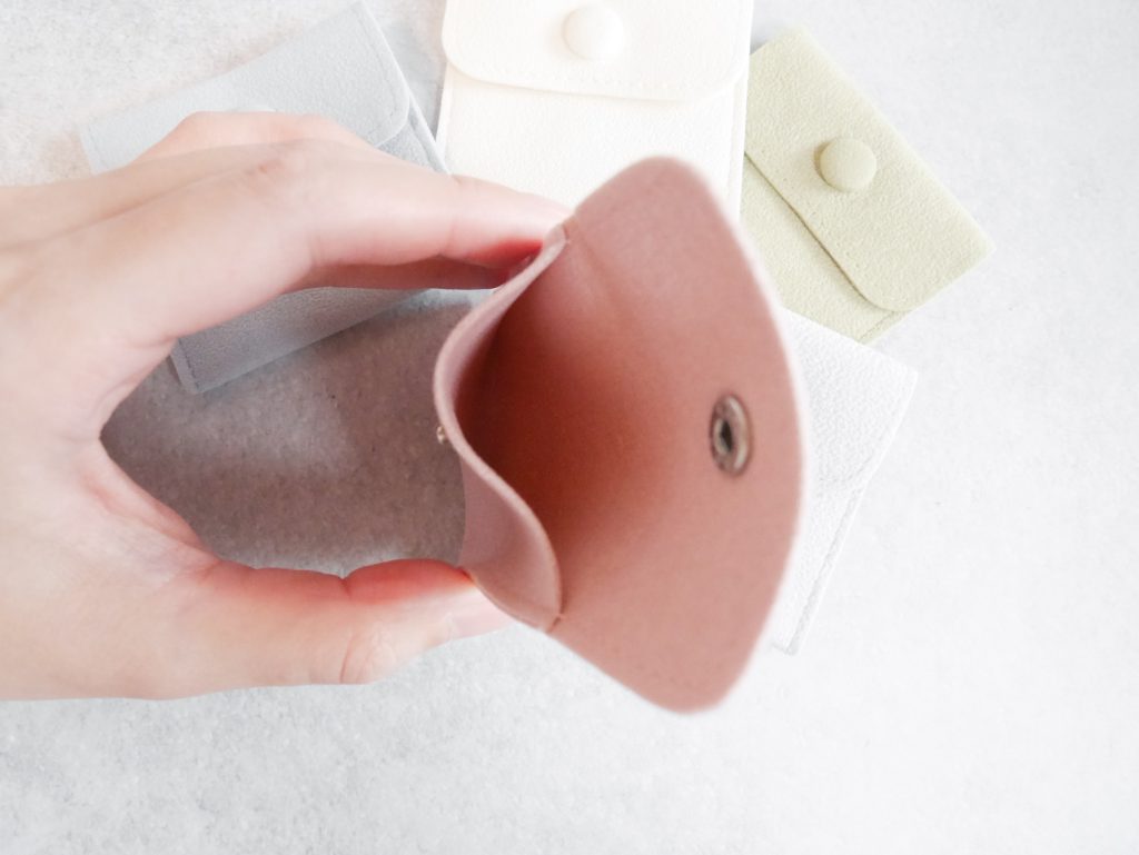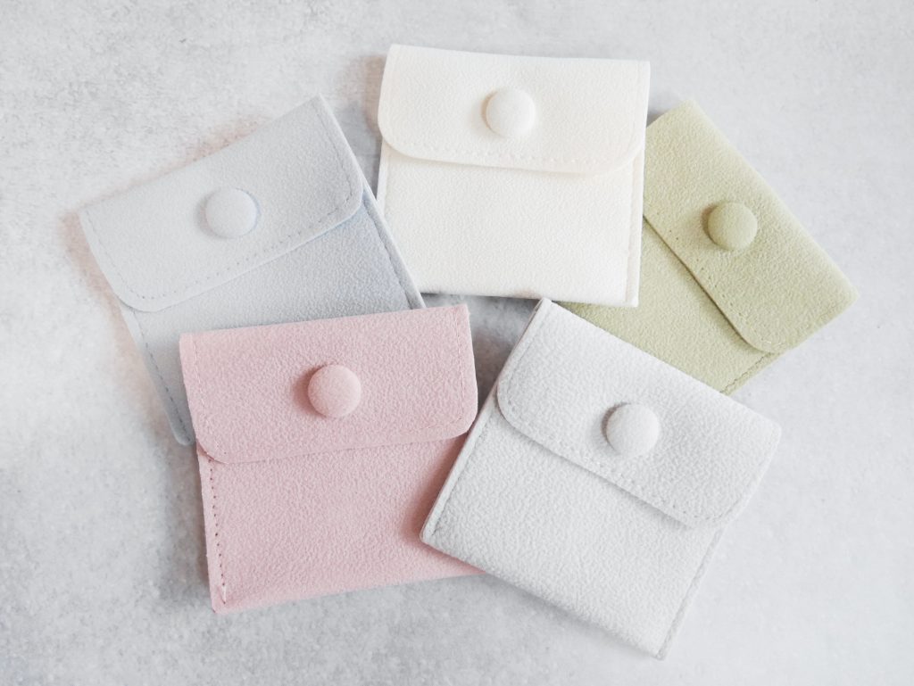 持ち運びに便利なミニポーチ。リングやイヤーカフを傷つけずに持ち運ぶことができます。夏休みのご旅行にも、あると便利ですね!